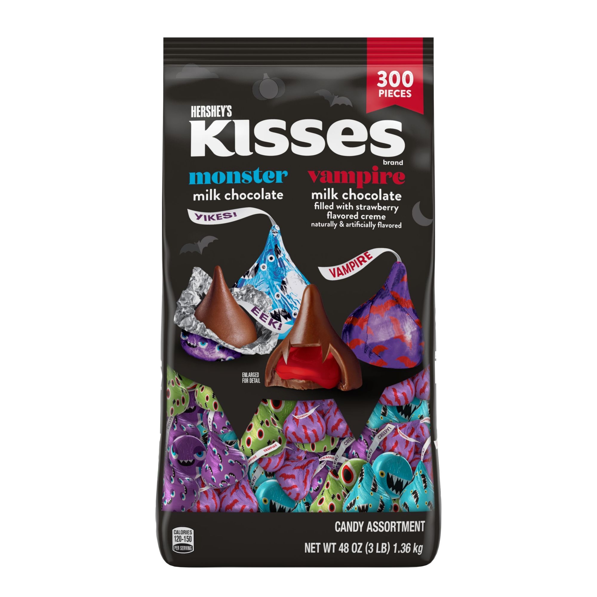 Go batty with your Halloween decorating this year with bat-covered vampire candies ready for candy dishes party favors and costume contest prize selections. The best way to determine if a product contains an allergenic ingredient is to read our product label. HERSHEYS KISSES Milk Chocolate Vampire has 1200 calories.